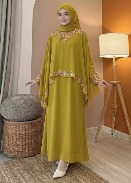 [PRE ORDER] Hayla Abaya 2.0 (Mustard) with Matching Shawl