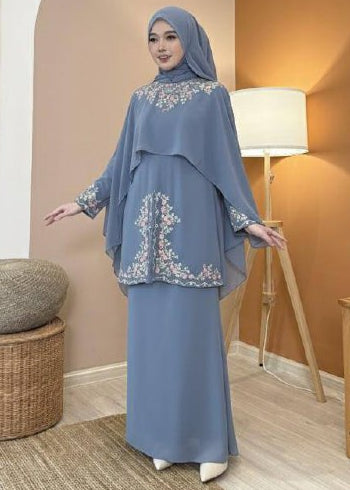 [PRE ORDER] Hayla Kurung (Dusty Blue) with Matching Shawl
